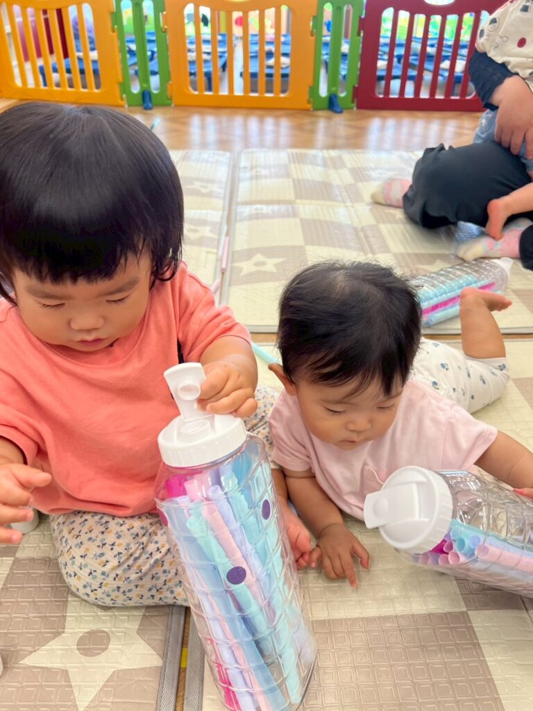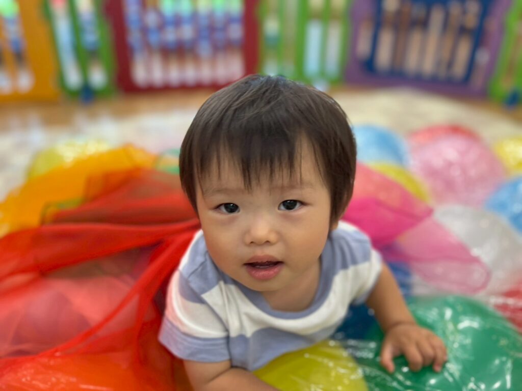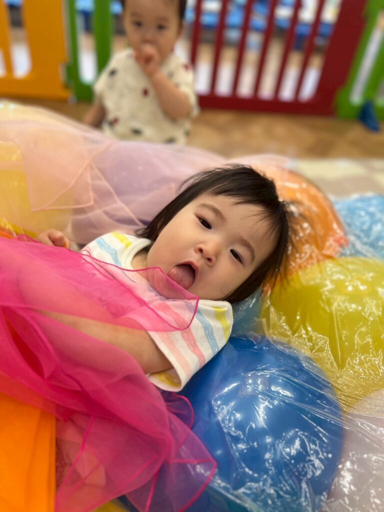 室内では0・1歳児さんたちが風船マットやリトミックスカーフで楽しく遊びました🎈✨