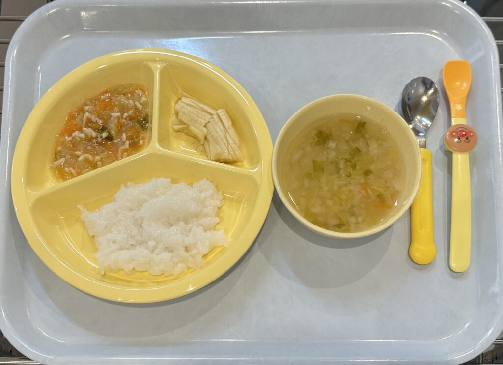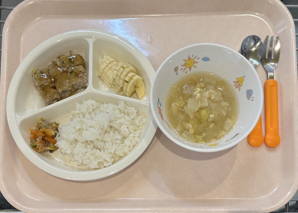 みそ汁(大根、玉ねぎ、白菜)、バナナ