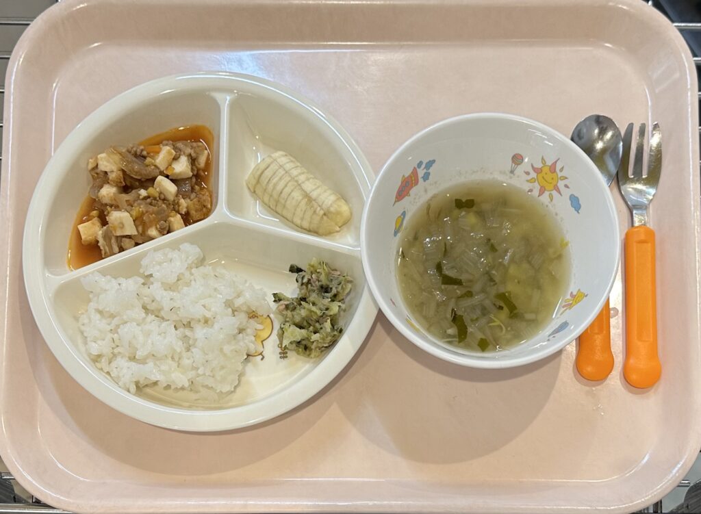 みそ汁(小松菜、玉ねぎ)、バナナ