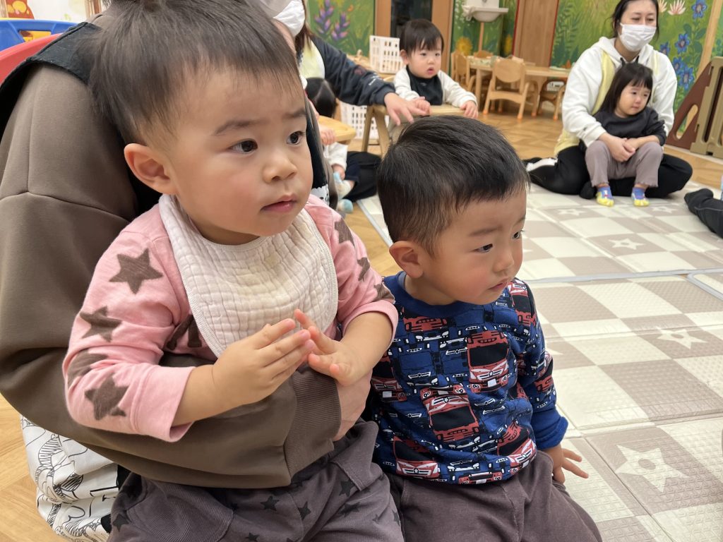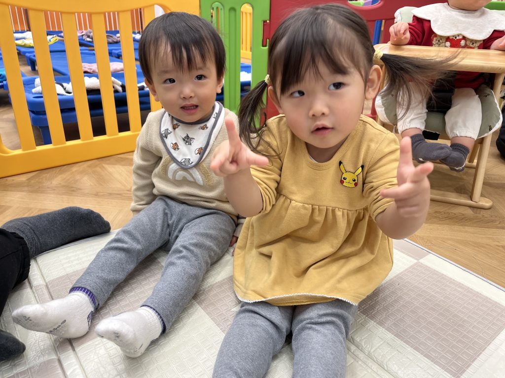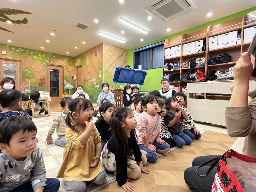 今日は英語教室の日でした!みんなで身体の部位を英語で練習したり、雪だるまの絵本を聞いたりして、楽しく英語に触れました。講師の先生が「ここはどこかな?」と身体を指しながら質問すると、「あし!」「て!」「ゆび!」と元気いっぱいに答える子どもたち!正解すると「Good job!(よくできたね!)」と褒められて、みんな嬉しそうでした。😊