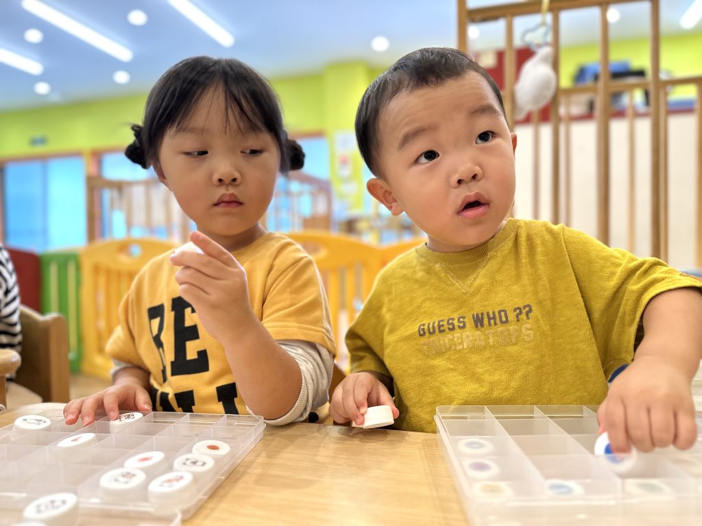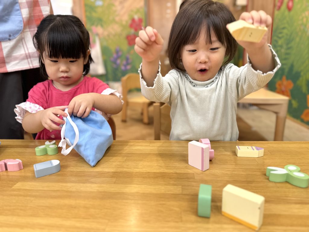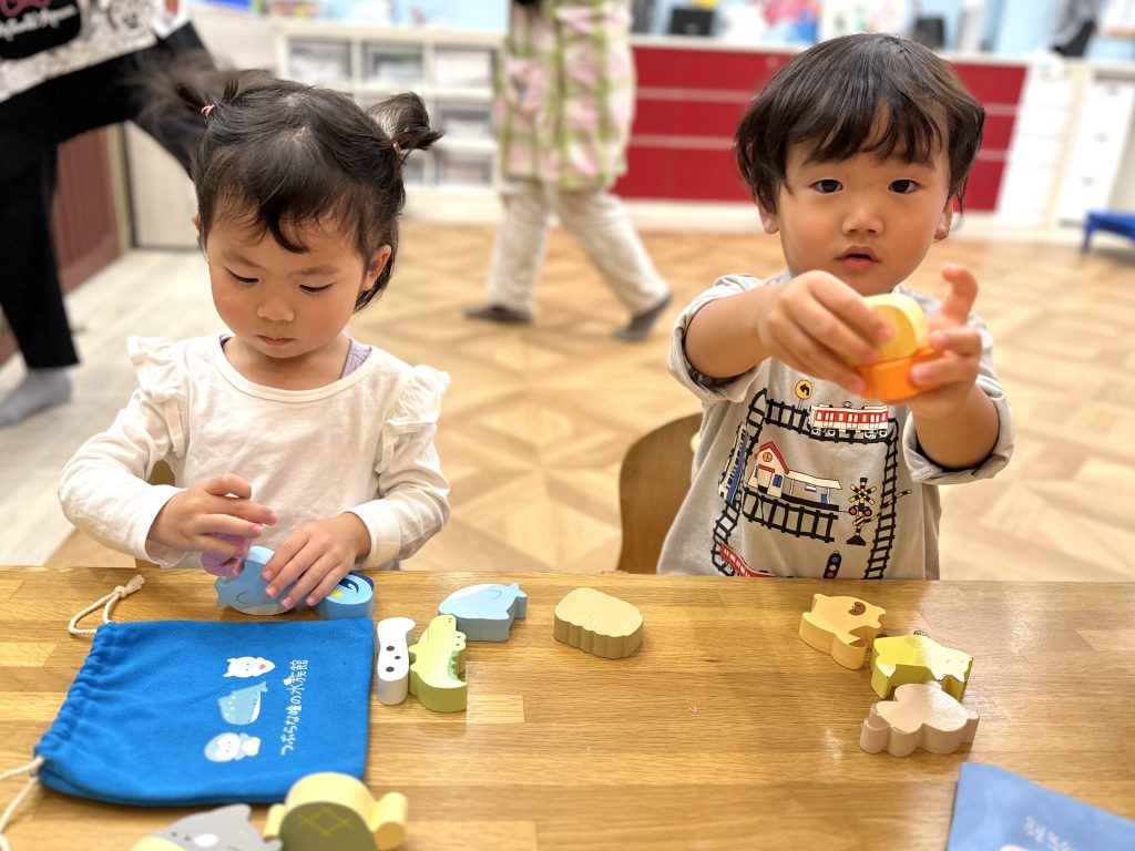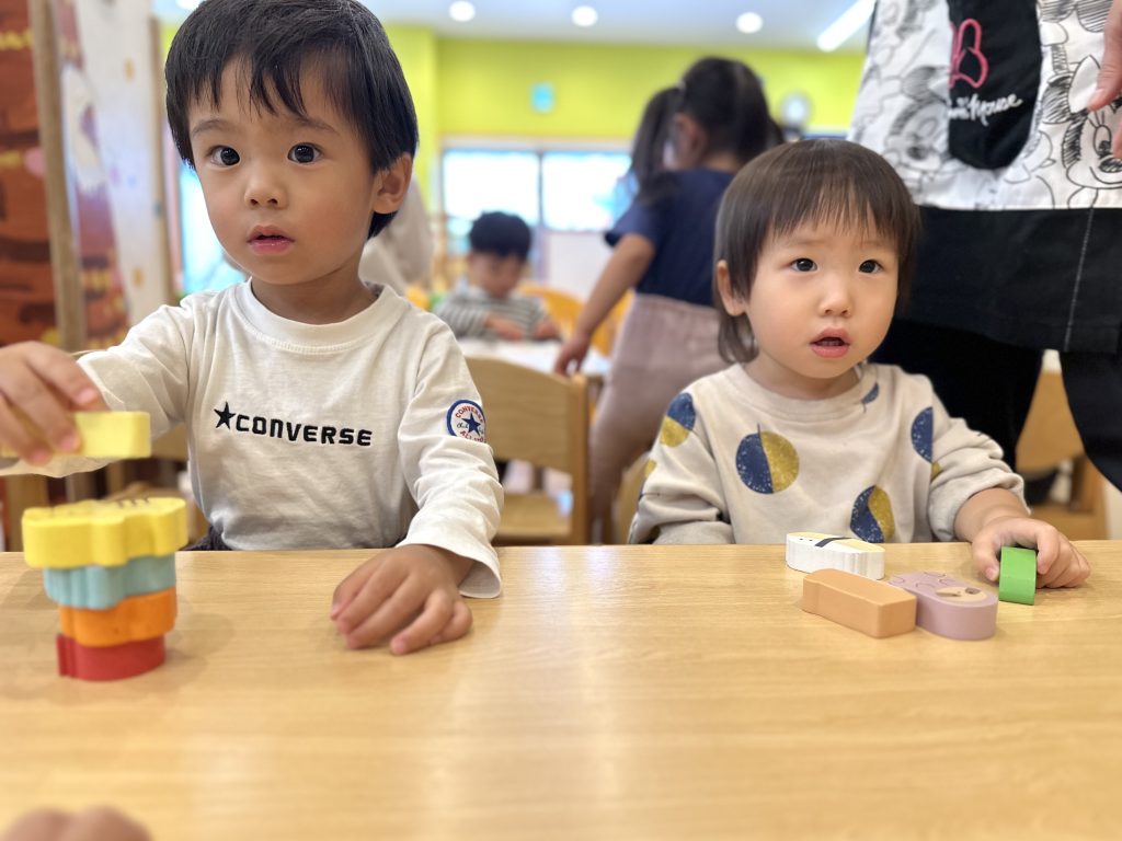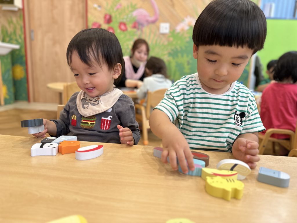 2歳児さんたちはパズル遊びに夢中!「ここかな?」と考えながらピースをはめる姿は、まるで小さな探偵さんのようです。🔍✨