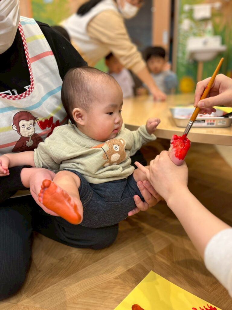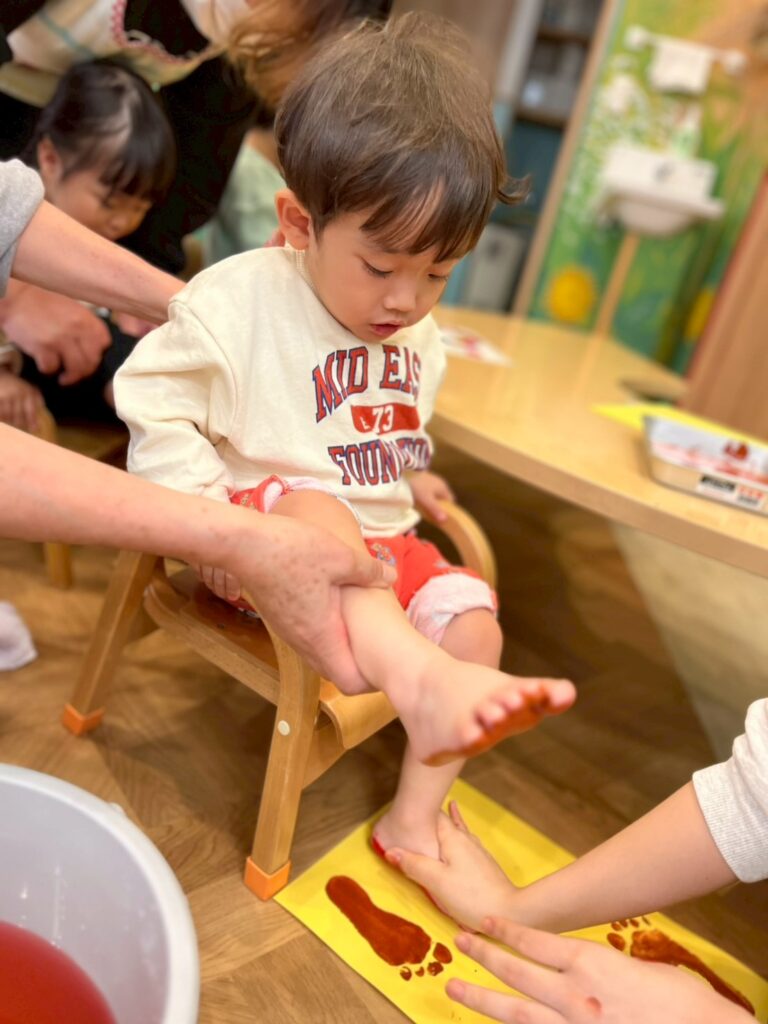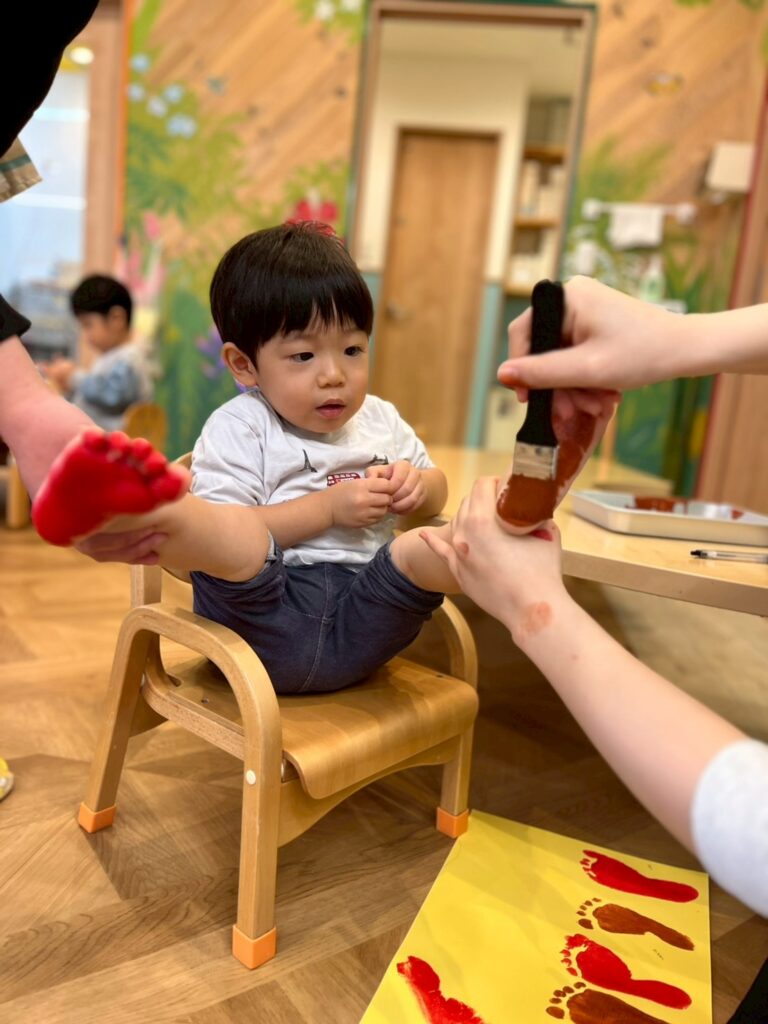 泣いてしまう子はほとんどおらず、みんな上手に椅子に座って足をペタッ!とスタンプを押すことができました👏✨