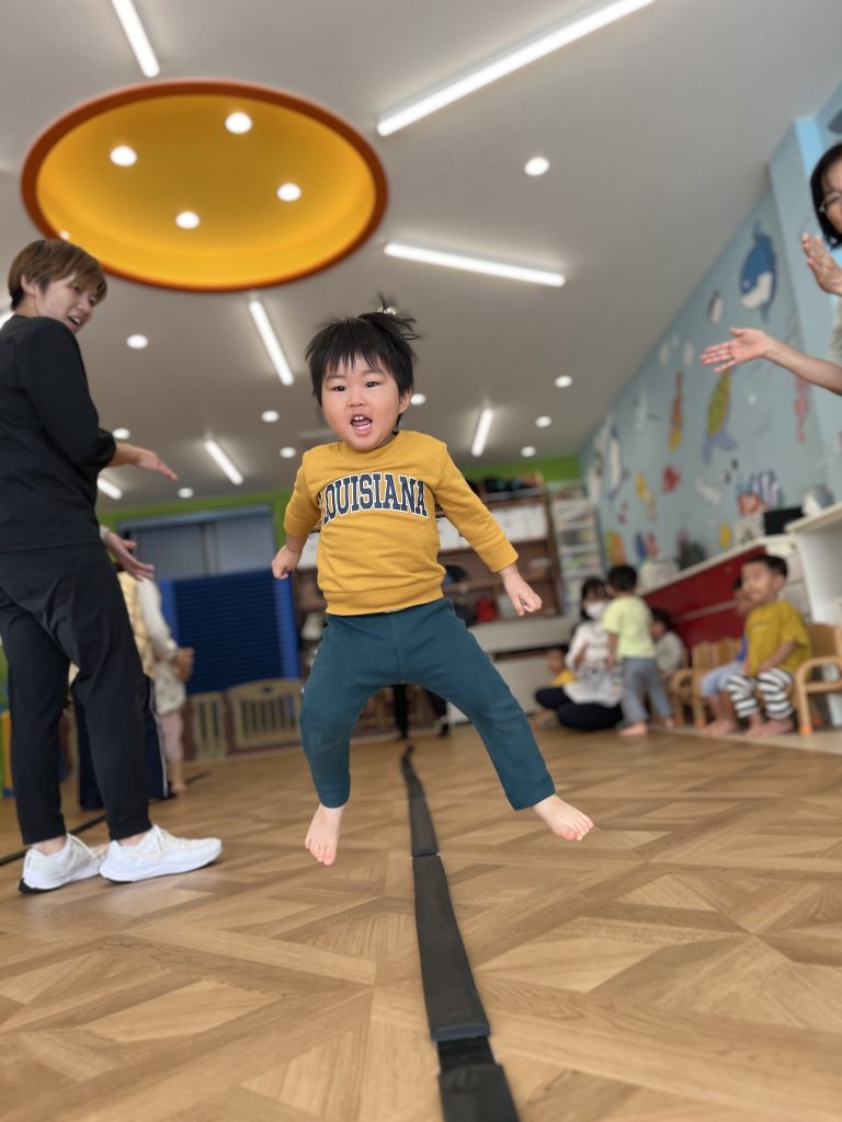 今日は、リズムジャンプでも遊びの時間でも、たくさんの笑顔が見られて嬉しかったです!また来週もみんなで元気いっぱい遊ぼうね🍀