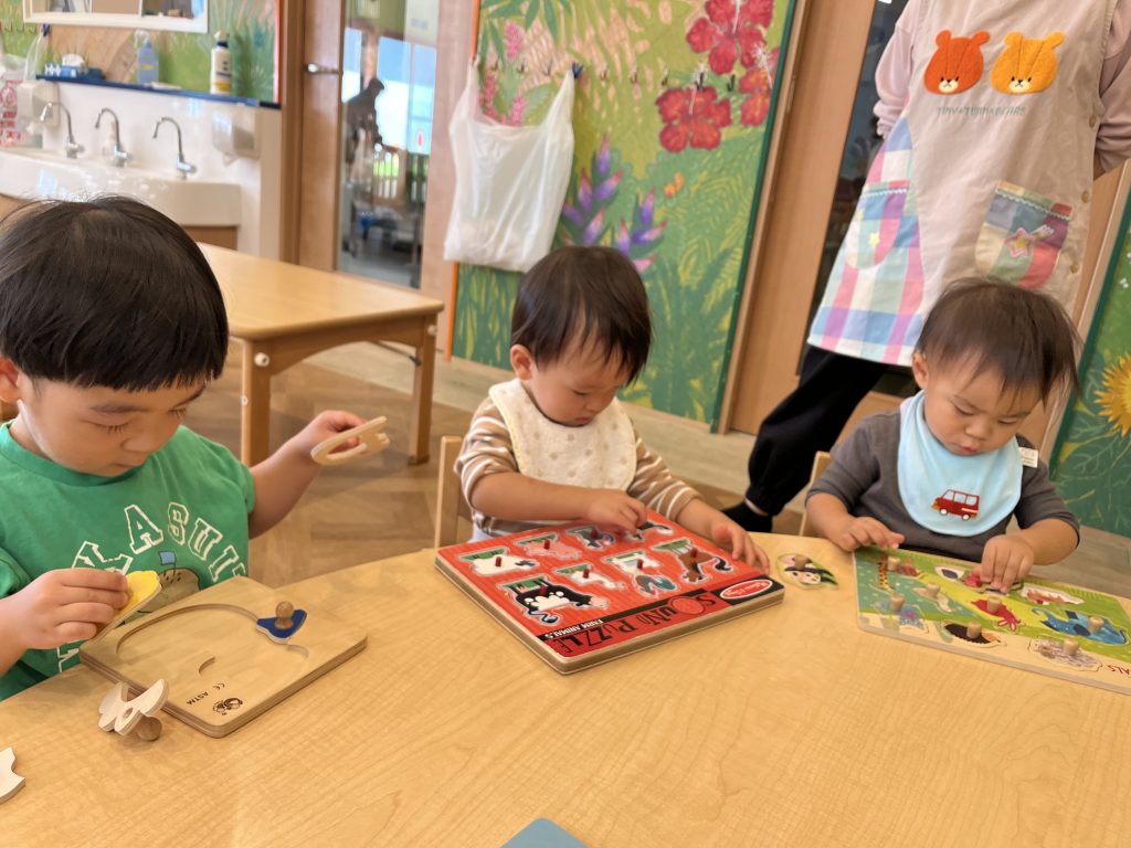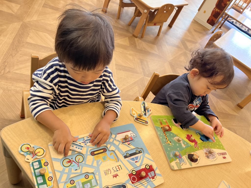 そして、パズルに挑戦する姿は本当に真剣そのもの!🧩小さな手でピースを一つひとつ丁寧にはめ込んでいく様子に、大人もついつい応援してしまいました。「できた!」という声が聞こえると、みんなで拍手をして大喜び🎉