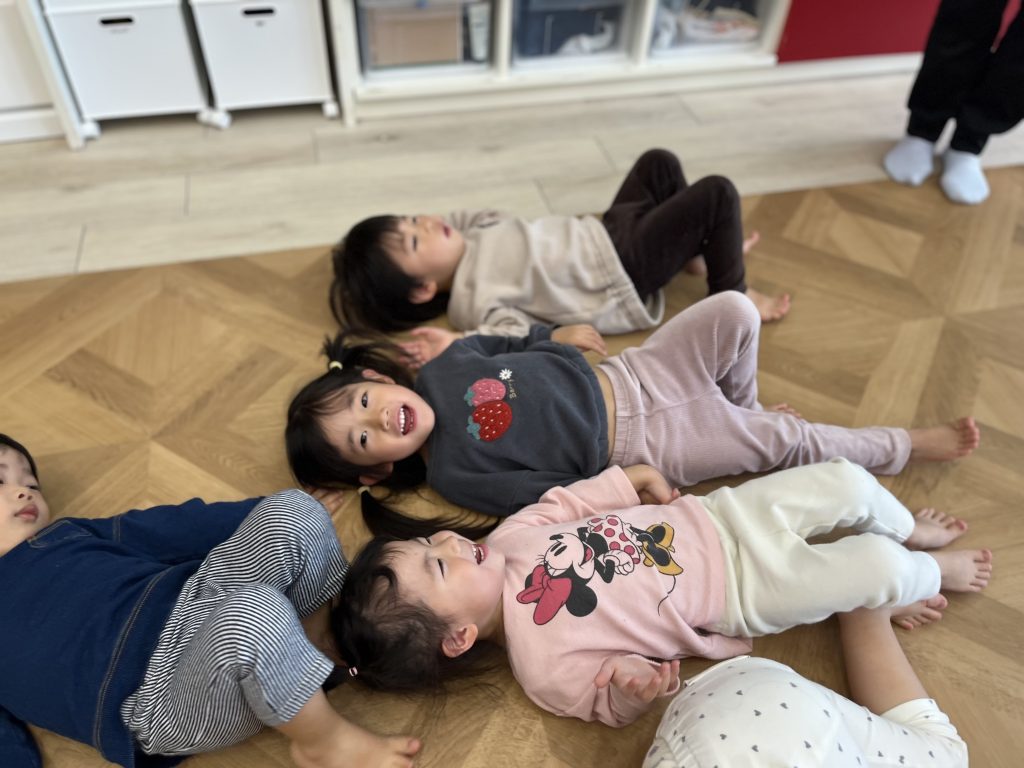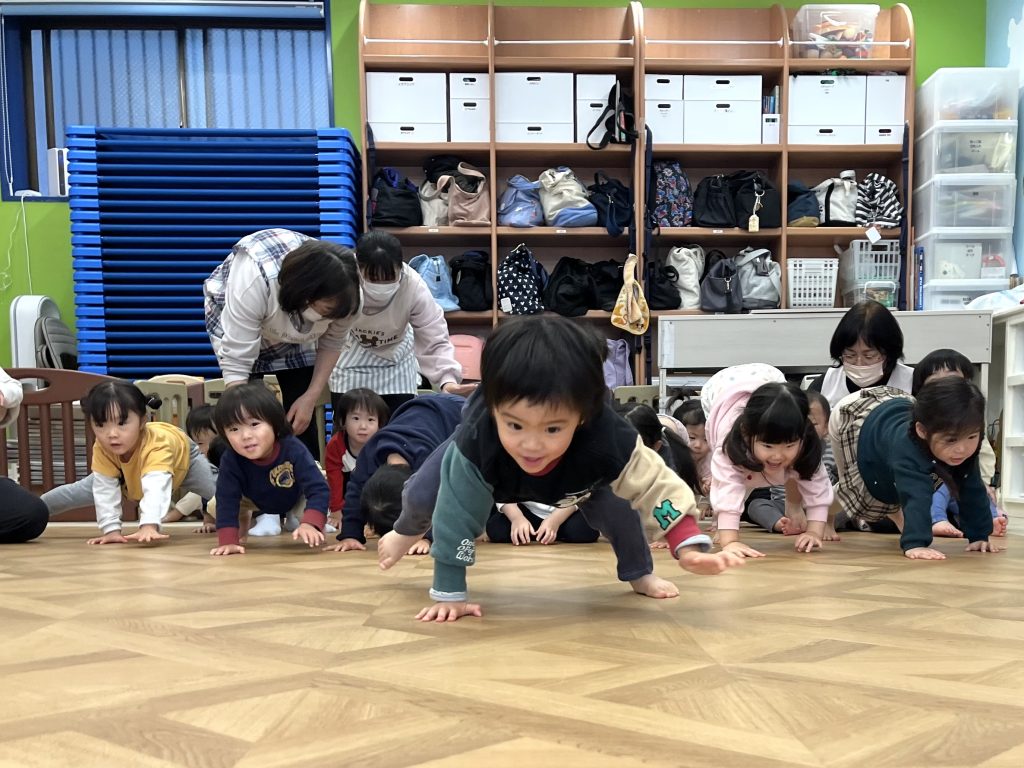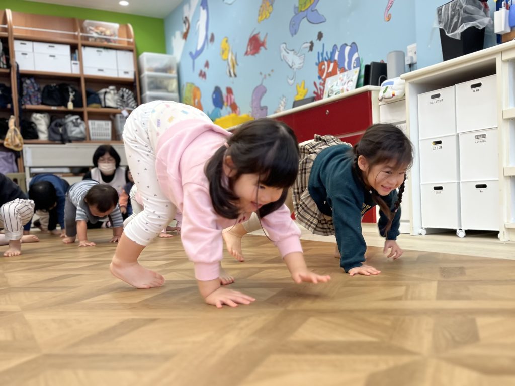 たずは元気いっぱいのダンスからスタヌト🎶みんな音楜に合わせおノリノリで螊り、柔軟䜓操では䜓をしっかり䌞ばしたした。先生たちず䞀緒に、ぞび🪱やラむオン🊁になりきっお、動物暡倣の競争もしたしたよ。みんなの「ガオヌッ」がずっおも力匷くお、たるでゞャングルにいるみたいでした