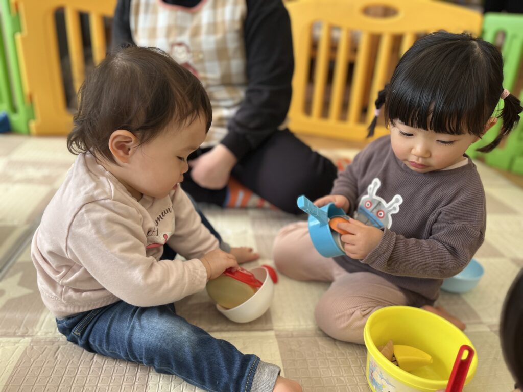 0・1歳児クラスでは、ママゴト遊びを楽しみました🍽️