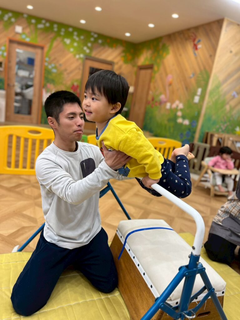 鉄棒をしっかりと握り、自分の力で体を支える姿はとても頼もしく、楽しみながら取り組むことができていました✨