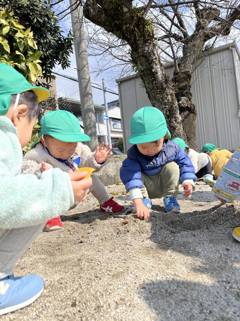 さっそく広場をみんなでダッシュ!🏃♀️🏃♂️💨 身体がポカポカしてきたら、お店屋さんごっこや砂でケーキ作りを楽しみました🎂✨ 「いらっしゃいませ〜!」と元気な声が響いて、本物のお店みたいでしたよ😊