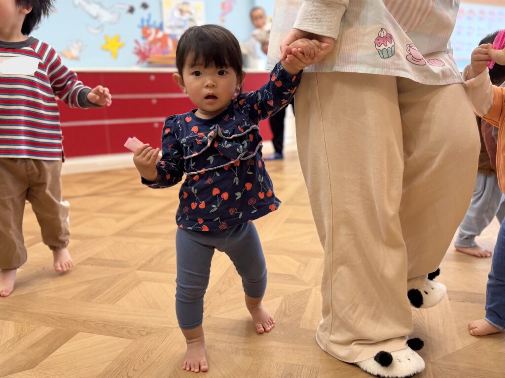 ひなまつりの曲に合わせて「歩く・止まる・手を挙げる」など、音をしっかり聞き分けながら表現する姿は、春の頃と比べて大きな成長を感じました🌸