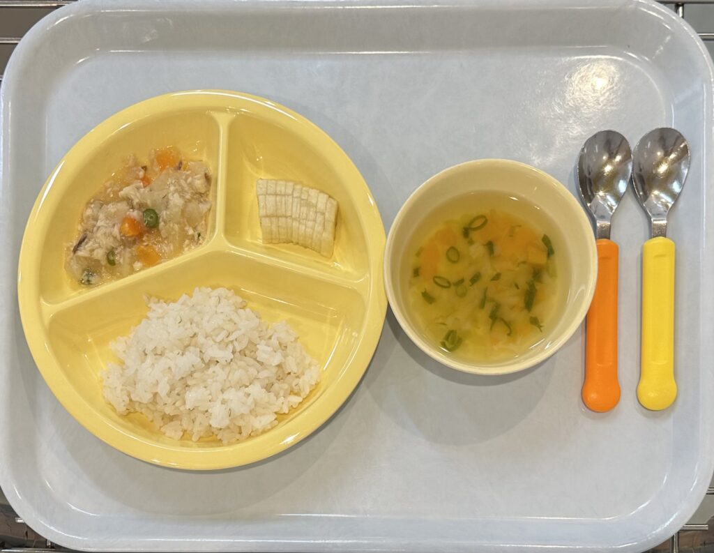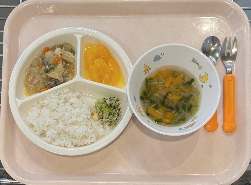 みそ汁(かぼちゃ、もやし、小松菜、えのき、ねぎ)、バナナ