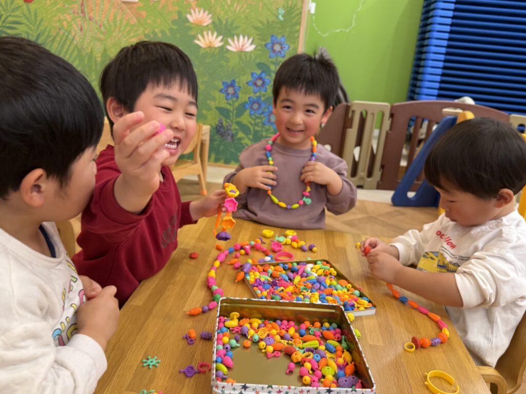 2歳児さんは、アクセサリーブロック遊びにも夢中!