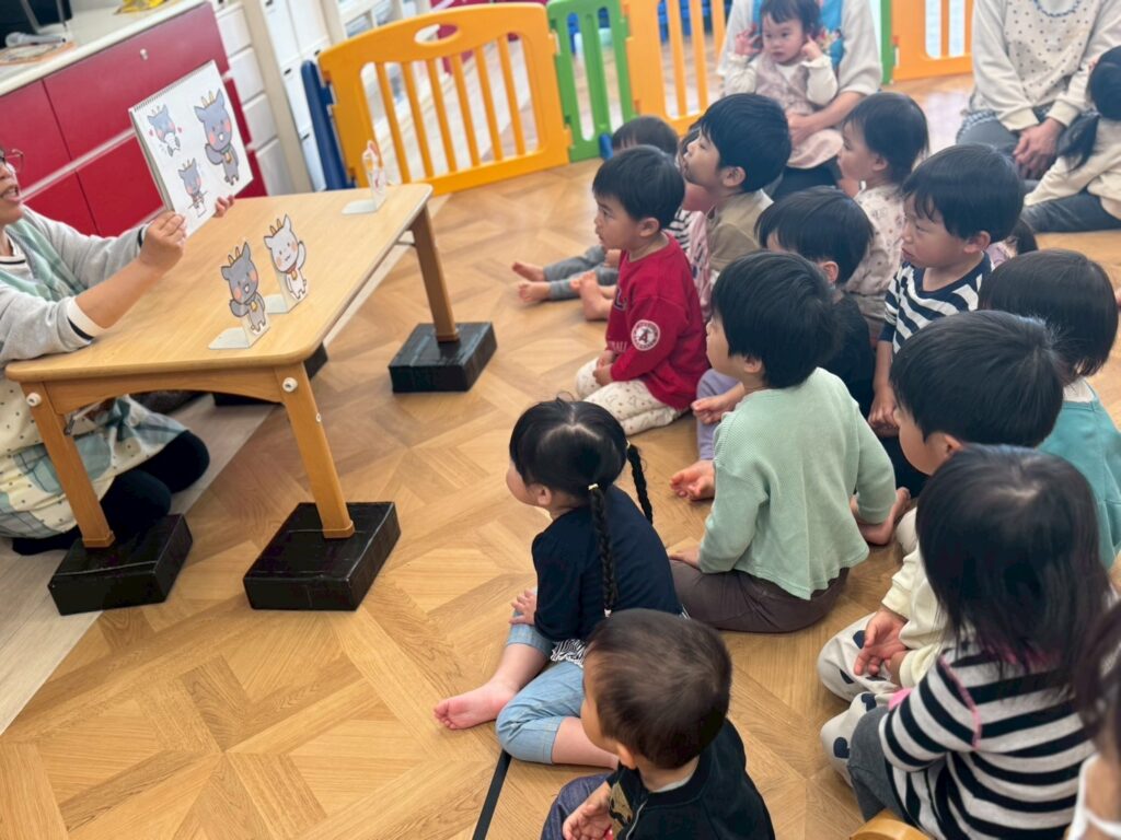 保育者からの出し物は、「やぎさんゆうびん」のスケッチブックシアター📮
