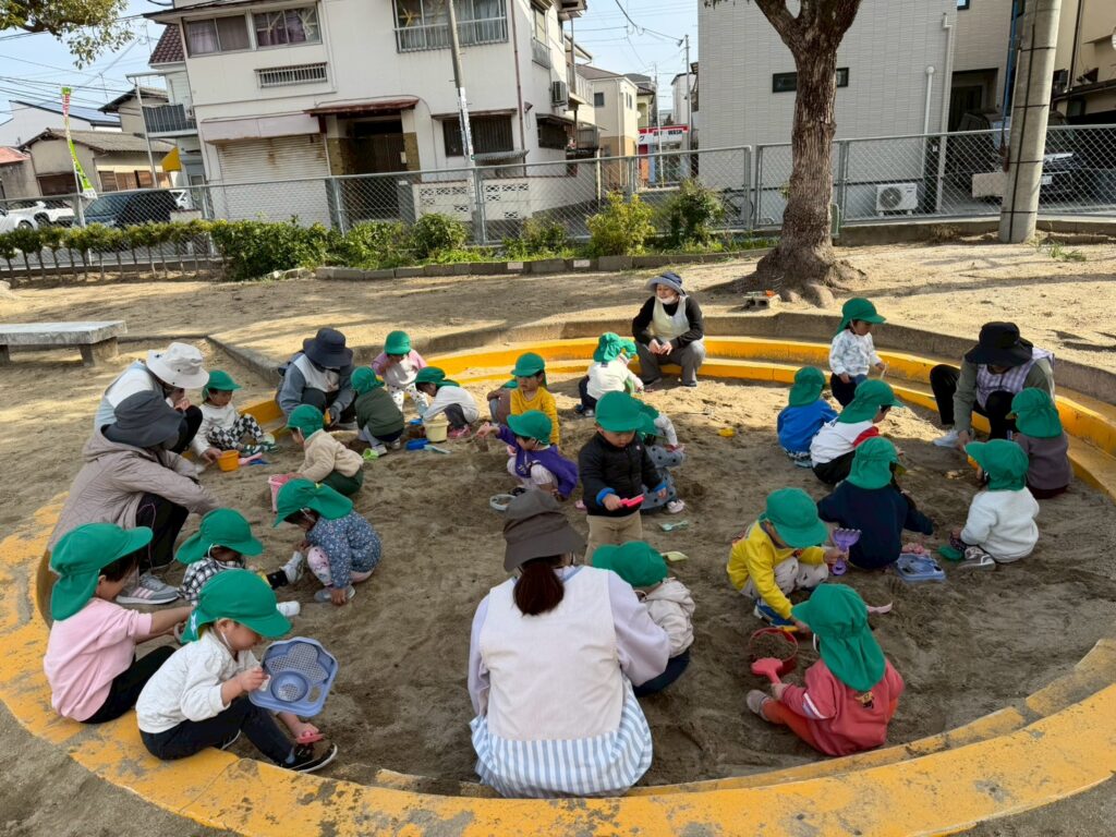 「砂場は座って遊ぶ!」「砂をかけない!」と、子どもたちが大きな声で教えてくれました✨