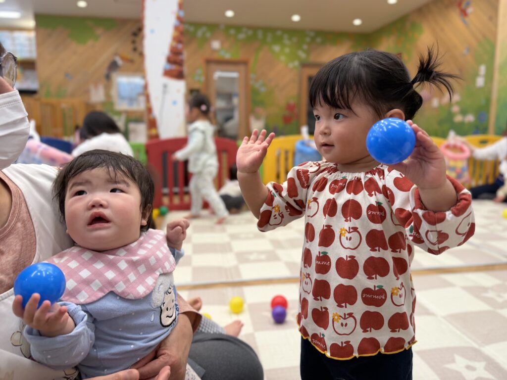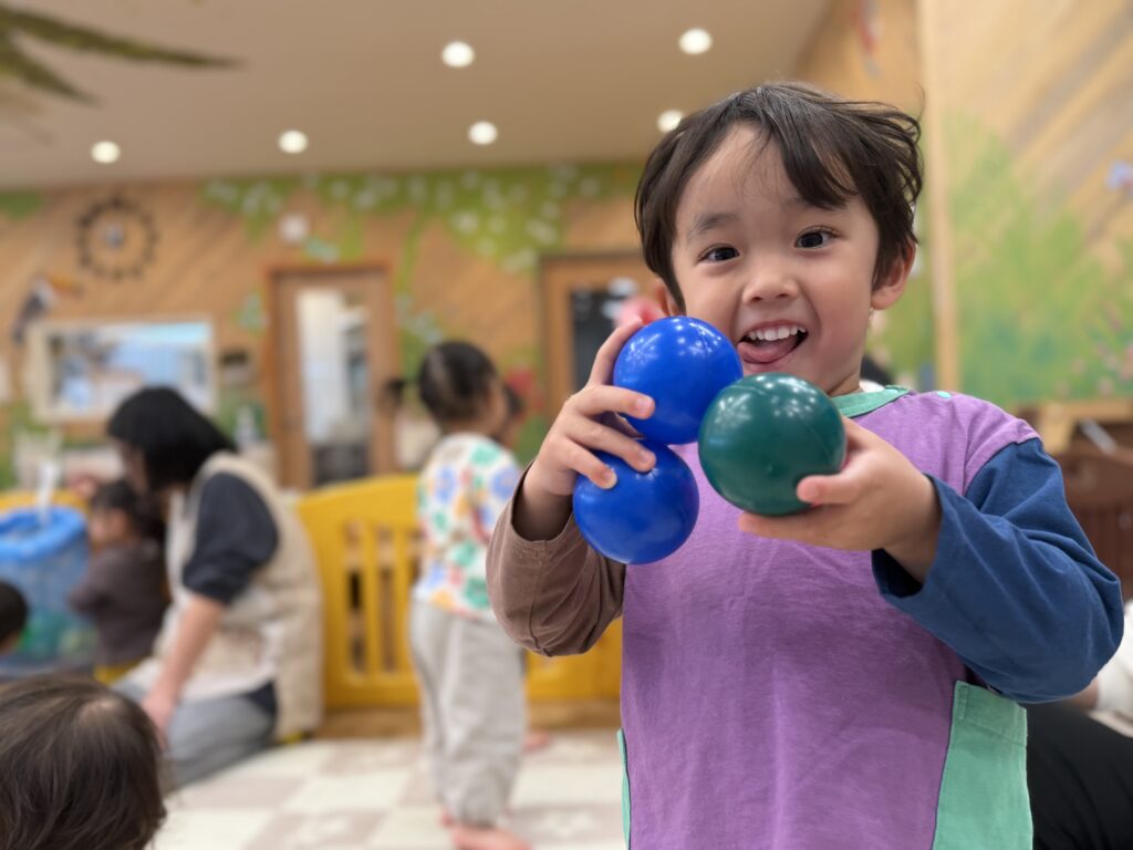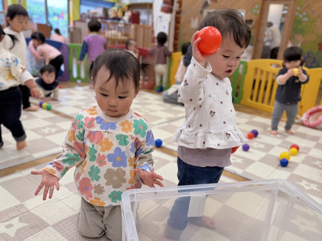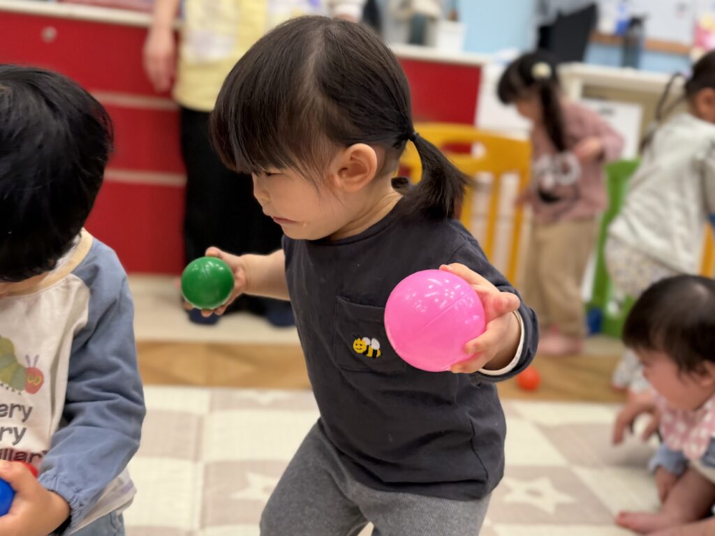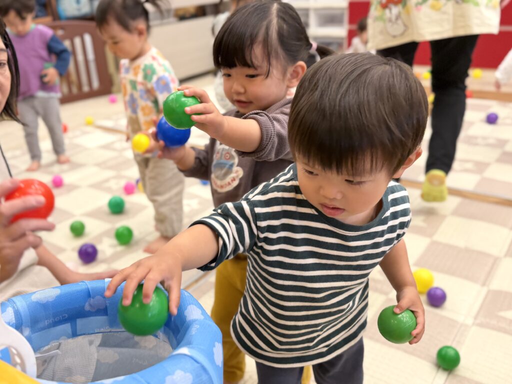 ボールを投げたり、カゴの中に入れたりしながら、元気いっぱい身体を動かしました💪