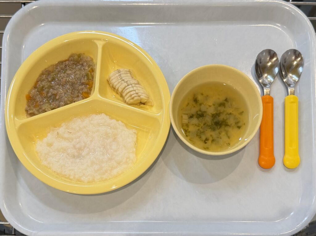 後期 3倍粥、あんかけ(豚ミンチ、キャベツ、玉ねぎ、人参)