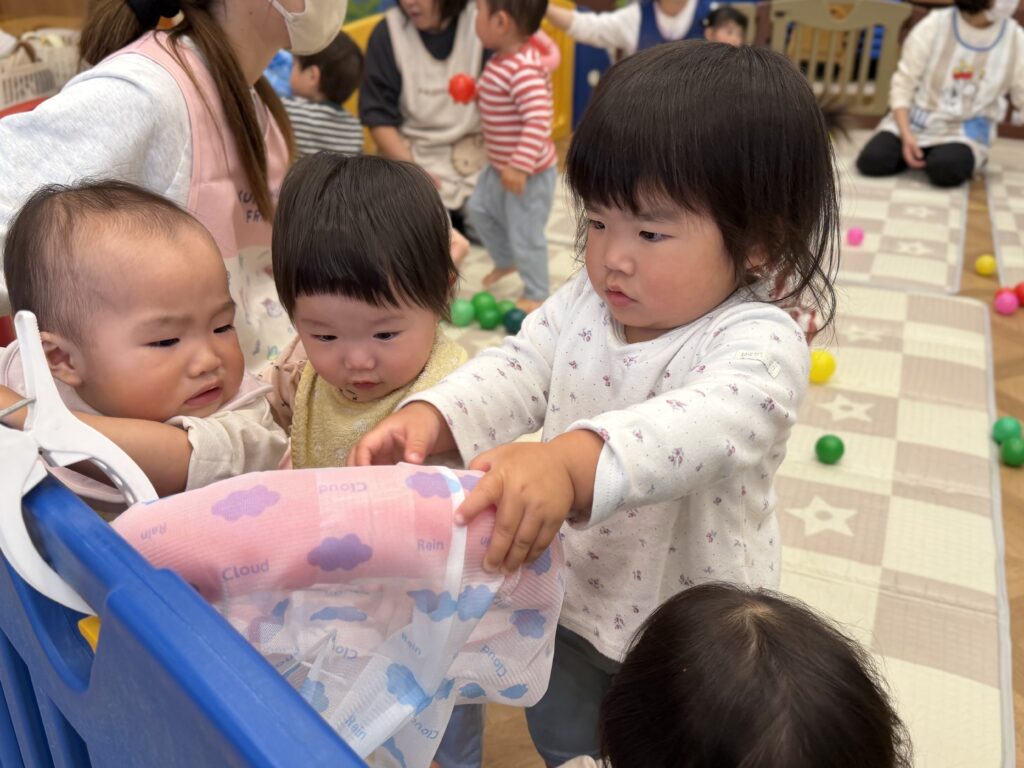 今日は室内でシール遊びとカラーボール遊びを楽しみました♪
