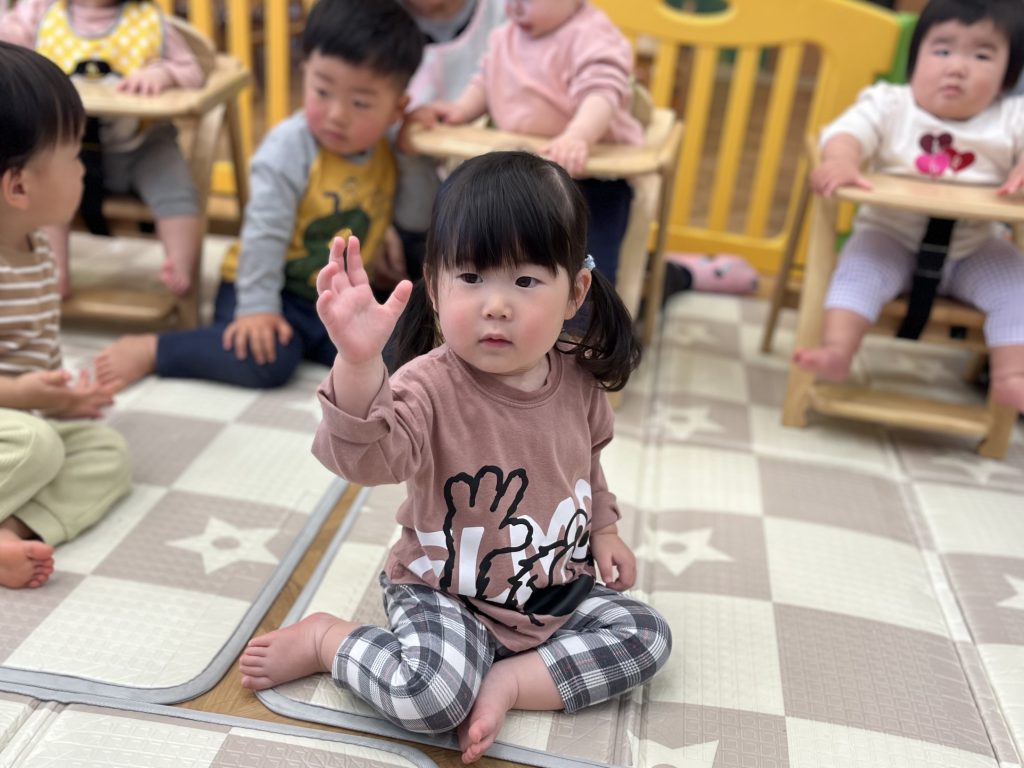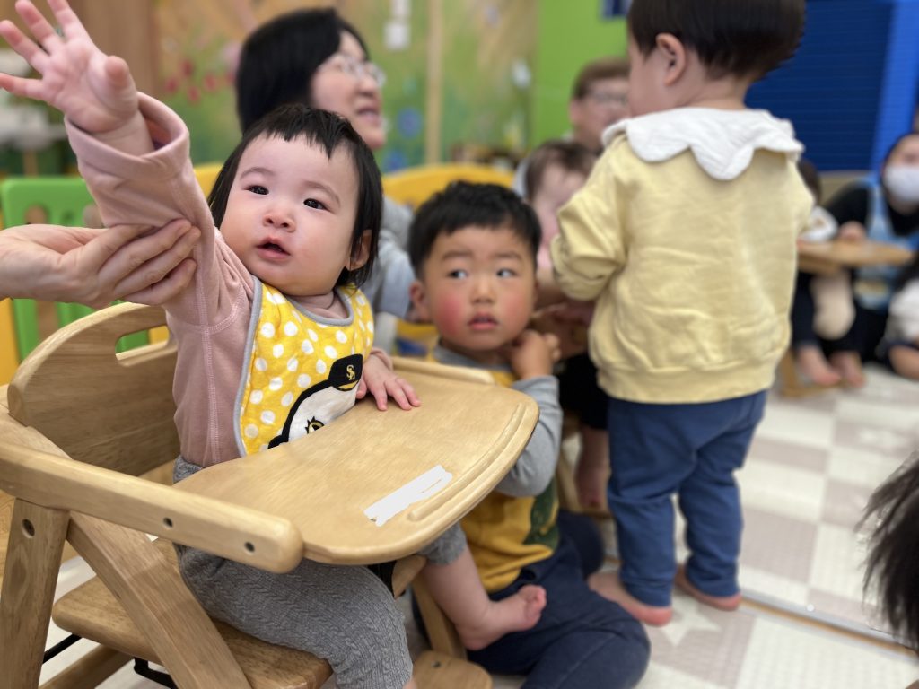 おやつの時間になると、自分でおやつを持ってパクッ!小さな手でしっかりとつかんで食べる姿に成長を感じます♪ また、音楽が流れると自然と身体を揺らしたり、手をパチパチ叩いたりしながらリズムに乗る子どもたち。そんな姿に、私たちも思わず笑顔になります😊