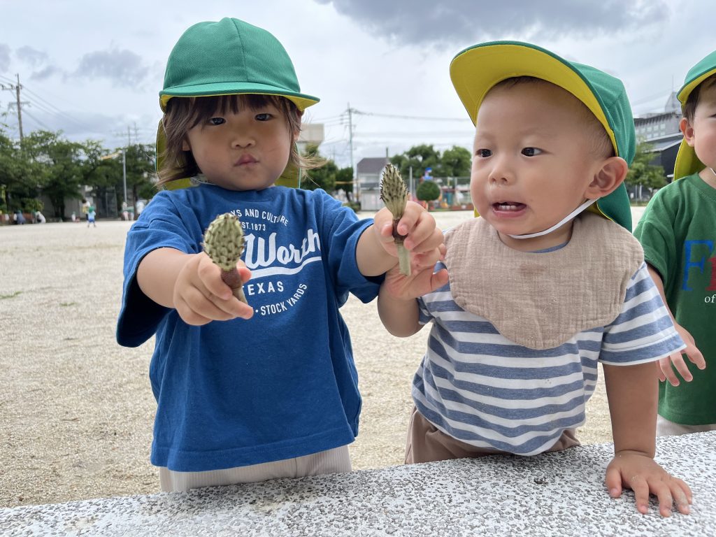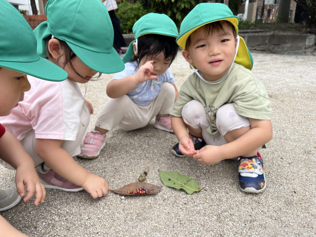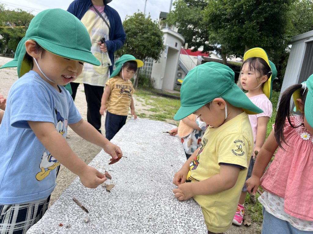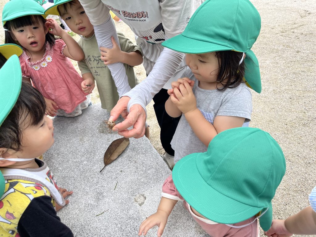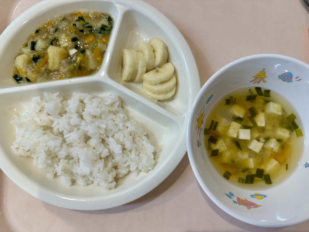 7/11 夏の大冒険! 2024/07/19 今日はみんなで公園に行きました。公園に着くと、元気に鳴いているセミの声が聞こえてきて、子供たちは大興奮!「セミさん、どこかな?」と興味津々で探し始めました😊 すると、なんとセミの抜け殻を発見!みんなでその抜け殻をじっくり観察しました。「これがセミさんの服なの?」と不思議そうな顔をする子供たち。その後も、公園でトンボを追いかけたりして、夏の自然をいっぱい楽しみました。 今日はたくさんの発見があって、とても楽しい一日でした!またみんなで冒険しようね! ごはん、みそ汁、タラのあんかけ、バナナ