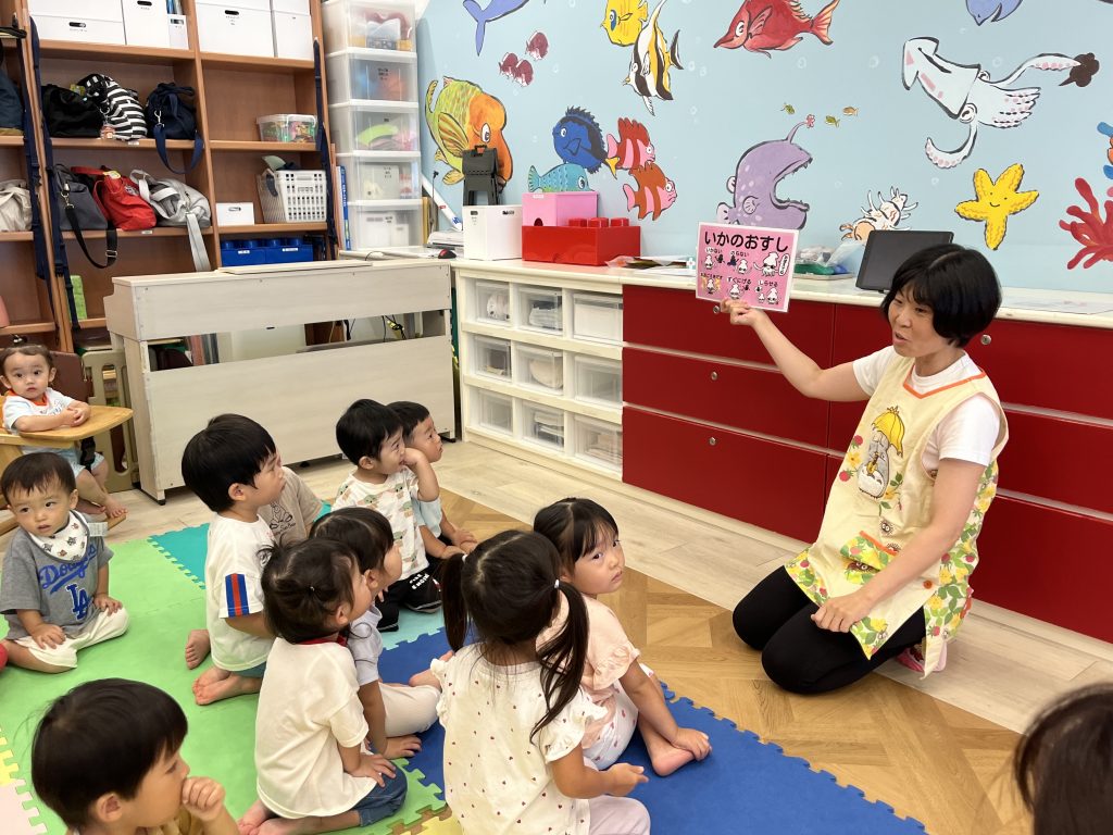 その後は「いかのおすし」のお話をみんなで真剣に聞きました。「知らない人について行かない」「困ったら大きな声で助けを呼ぶ」といった大切なお約束も、しっかり学ぶことができました。みんなの真剣な表情がとても印象的でしたよ。