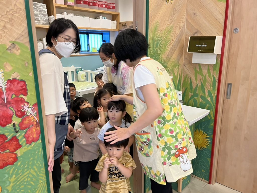 少し緊張する場面もありましたが、みんなとってもがんばりましたよ!不安になって泣きそうになったお友だちも、保育者の優しい声かけで安心して、みんなと一緒に落ち着いて避難することができました😆