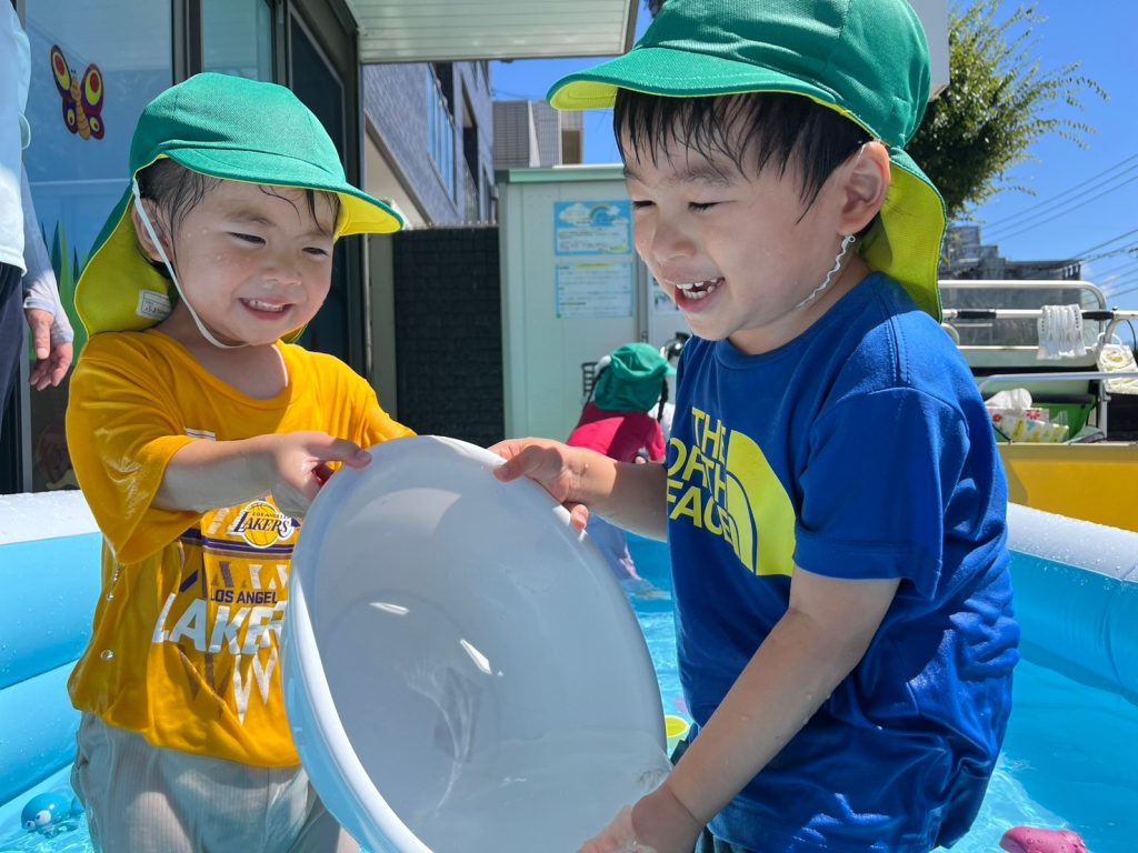 プール遊びも回を重ねて、みんなだんだん慣れてきた様子。順番を待つときも室内でしっかりと座って待てるようになりました。⏰プールから上がるときも「次また遊ぼうね!」とニコニコしながらスムーズにお片付けもできて、とても頼もしい姿が見られましたよ!🛁🧺