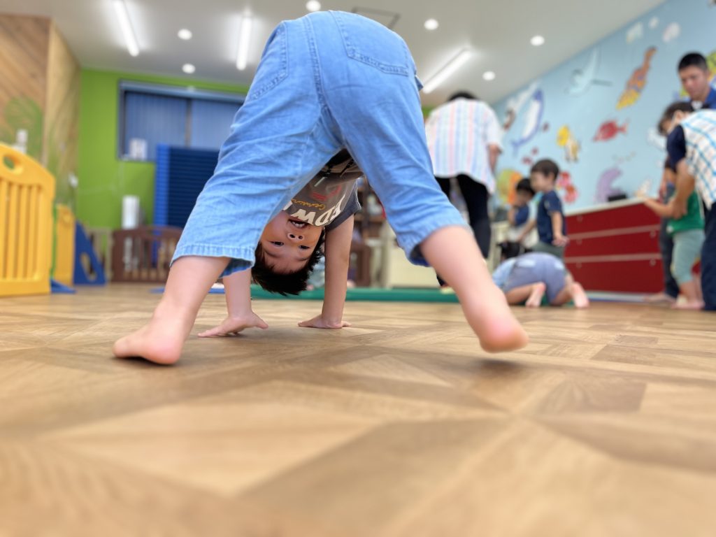 そして、前転も練習中!おへそを見ながらくるりと回れるようになってきたので、あとは回った後に素早く立ち上がって、かっこいいポーズを決める練習をしています👏✨ みんなの成長が楽しみですね!
