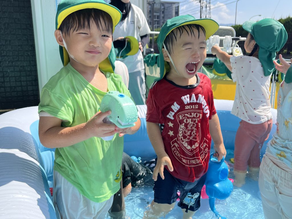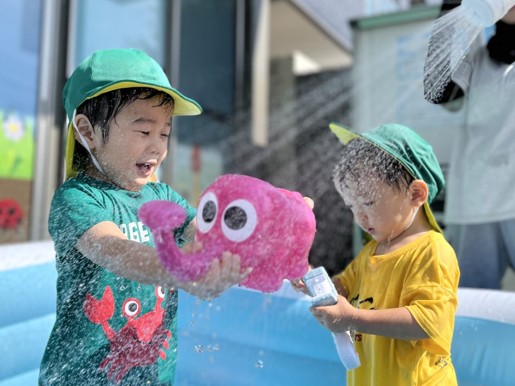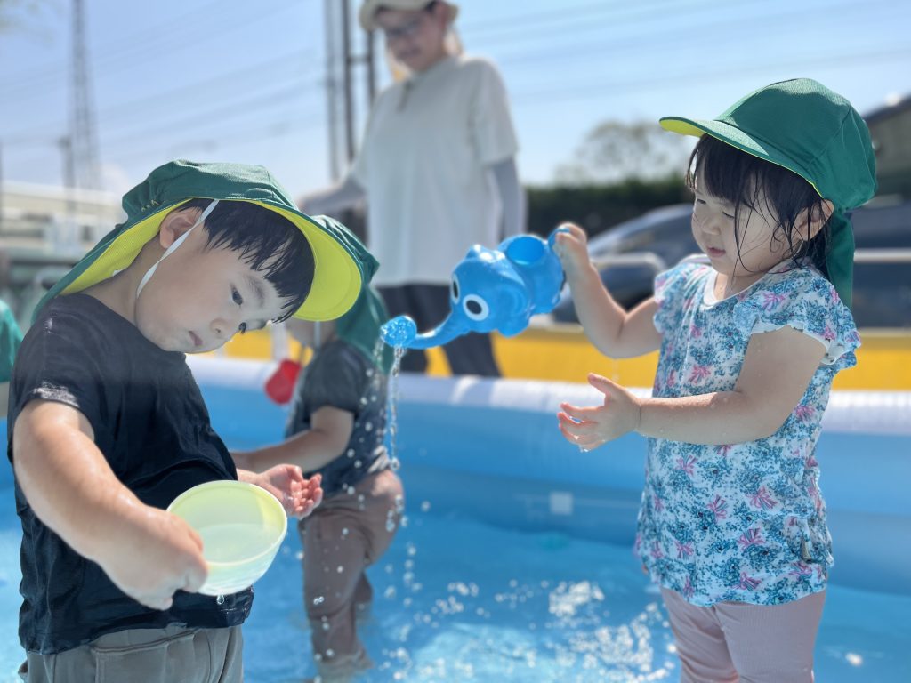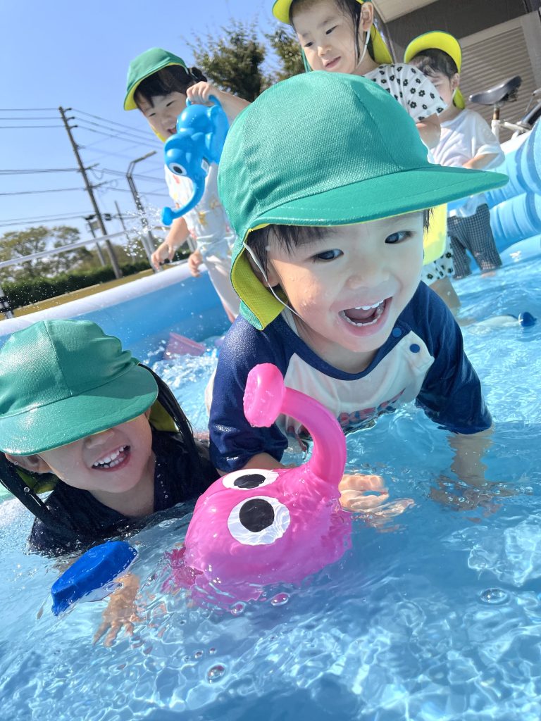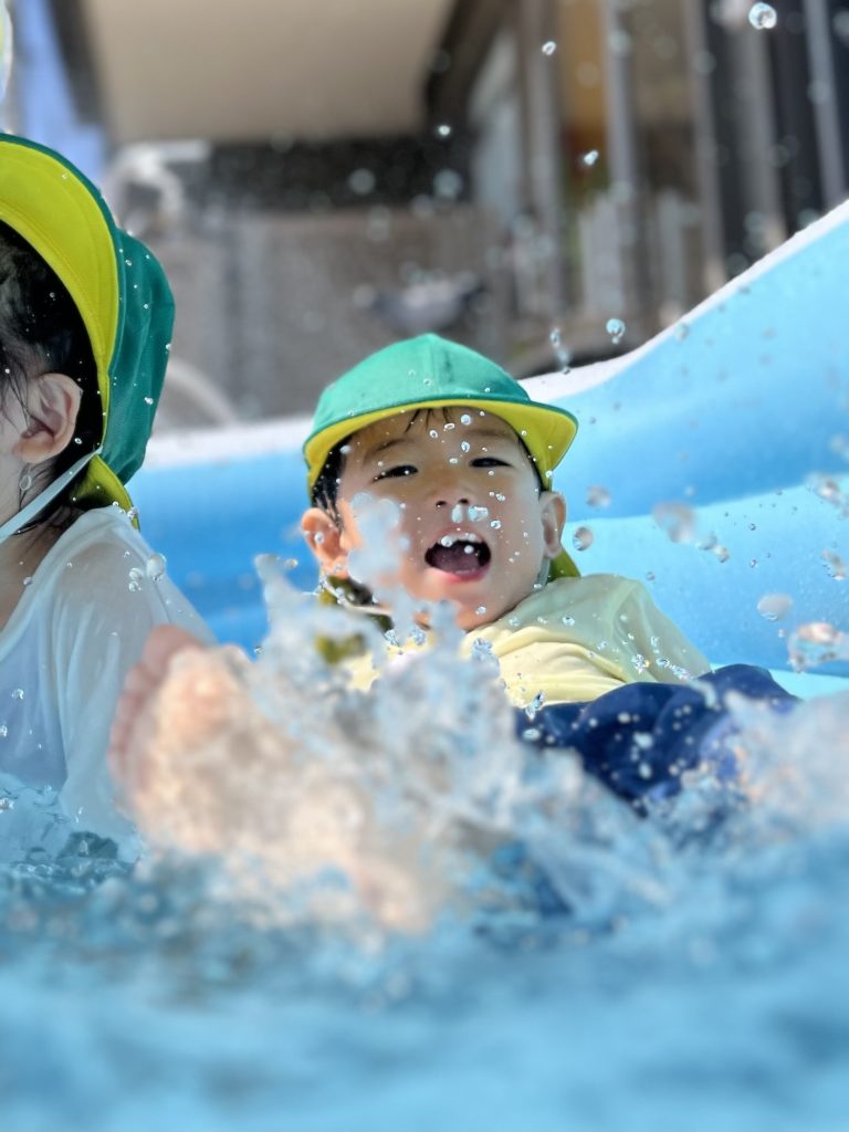 みんなで楽しく遊びながら、暑さを吹き飛ばしています!次回のプール遊びも楽しみですね🎶